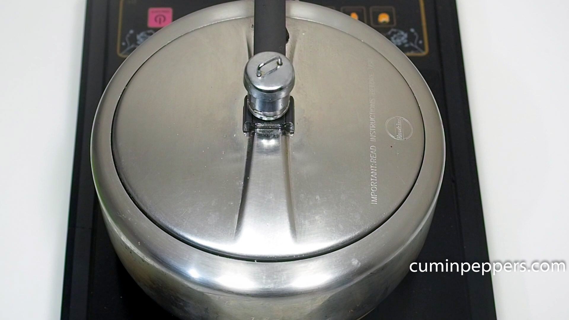 (Keep the flame high for 1 whistle, then reduce the flame to low for next 4 whistles)