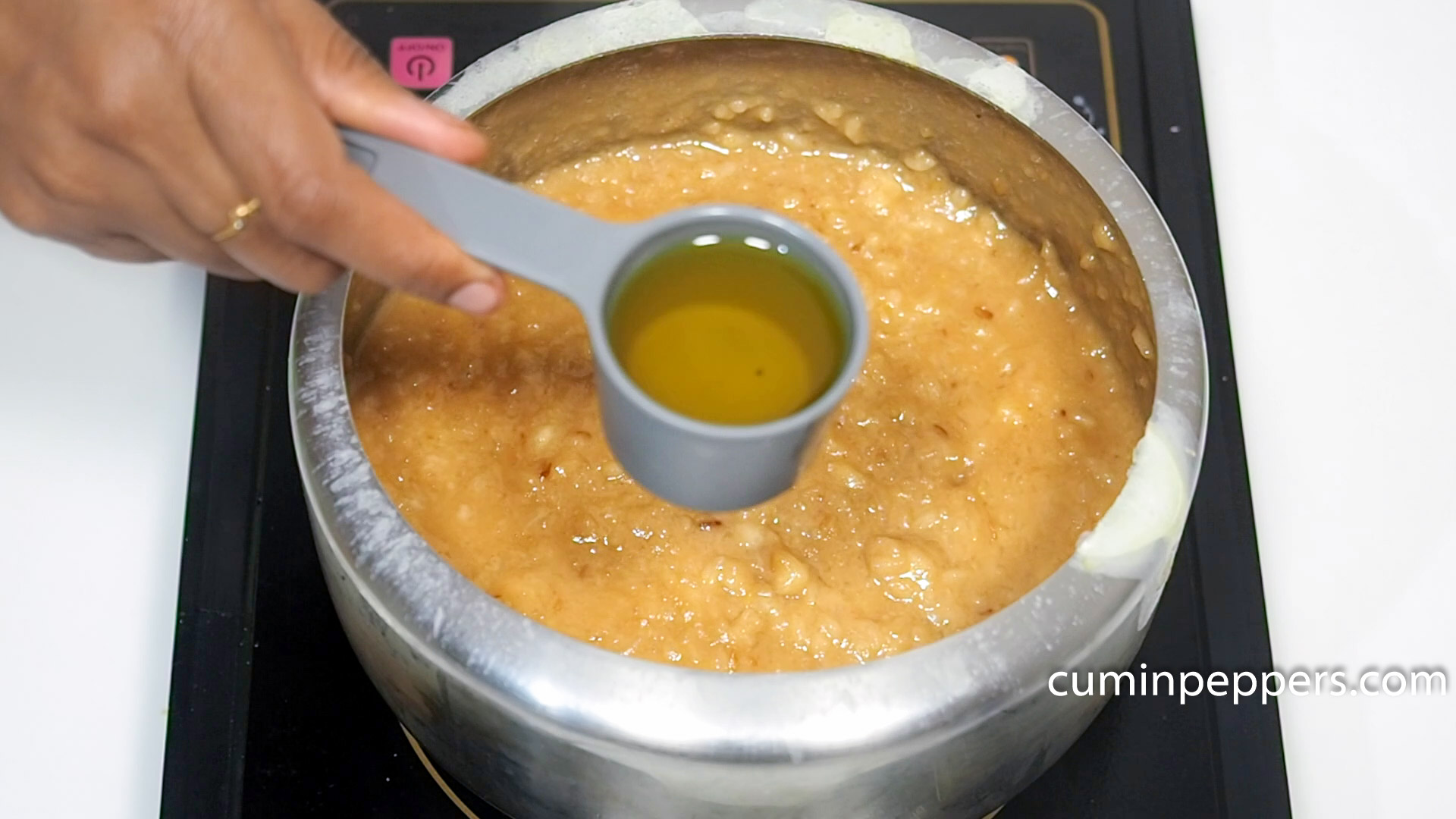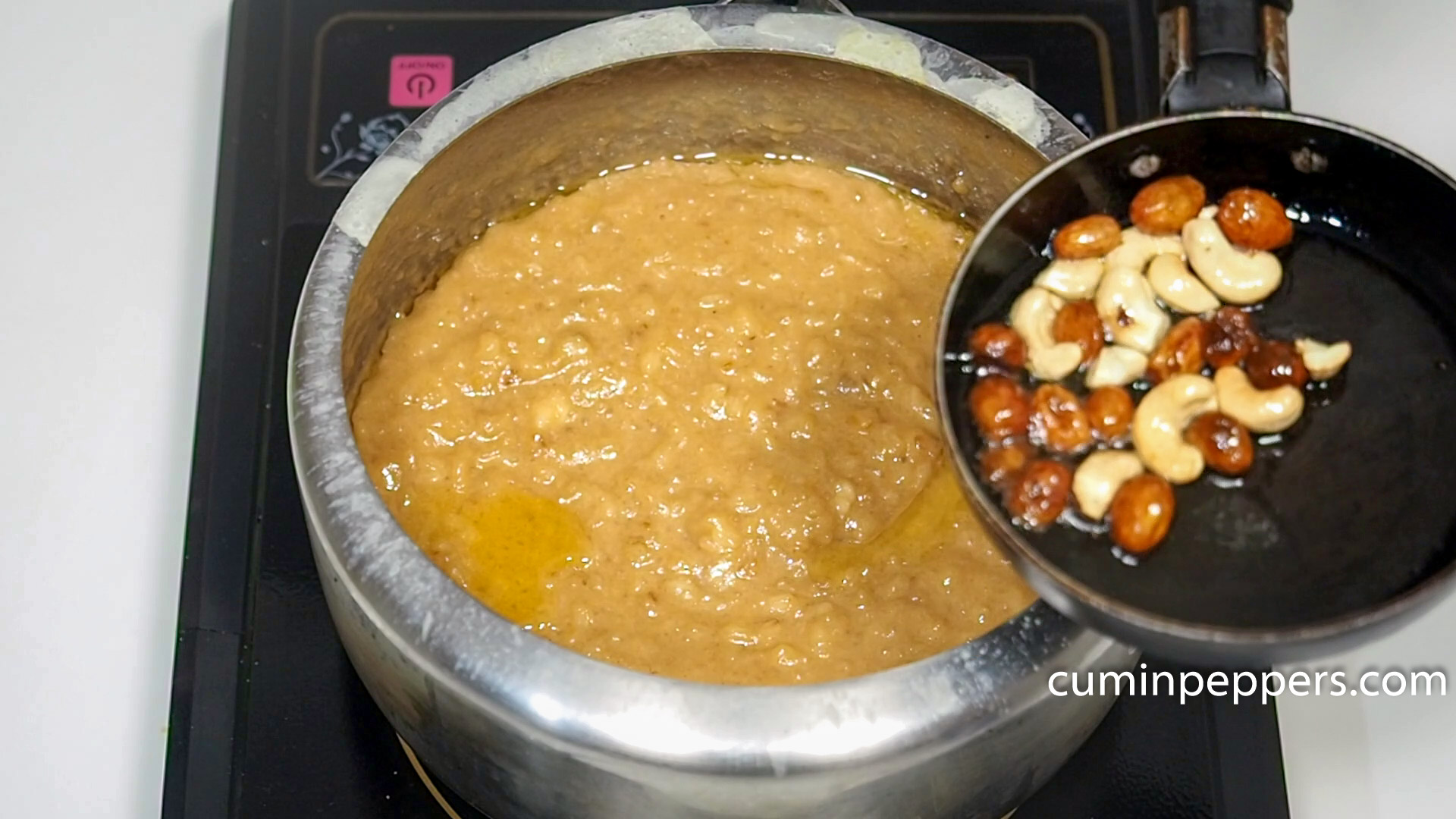 5. Meanwhile fry the cashews and raisins in 2 tsp of ghee, (first put the cashews in the ghee, when it is half done, put the raisins and switch off the flame, mix it well, raisins swell in the ghee)