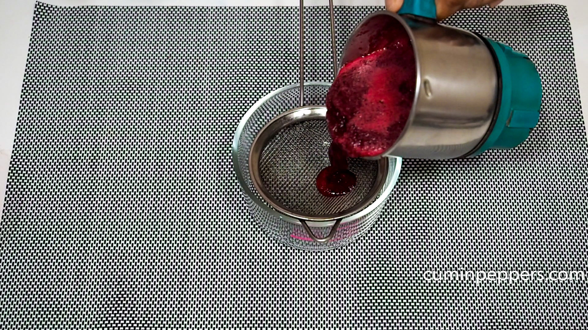 - strain the ground paste, keep the beetroot extract for the use